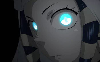 Close-up of Arrow from Fire Force with glowing blue eyes, rendered in detailed anime style, 8K Ultra HD quality for PC desktop background.