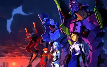 Neon Genesis Evangelion 4K Ultra HD: Shinji, Rei, Asuka & Evas in Epic Sunset Scene by Typo