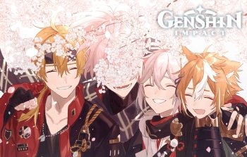 Cheerful Moments: HD Wallpaper of Genshin Impact's Kaedehara Kazuha, Thoma, and Gorou by ふめ〜