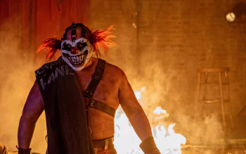 Twisted Metal Inspired Fiery Background with Masked Figure Wallpaper HD