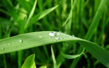 Dew Drops on Green Leaf Close-Up HD Wallpaper