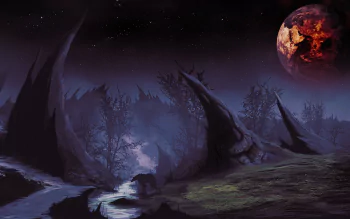 4K Ultra HD Dark Forest with Fiery Red Moon Wallpaper by Shahab Alizadeh
