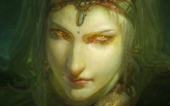 Enchantress Pendant: Fantasy Courtesan in Gleaming Jewelry – HD Wallpaper