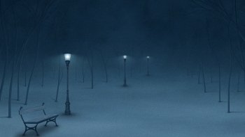 Street Lamps in a Snowy Park