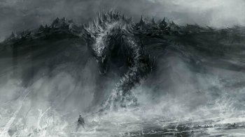 Epic Battle at the Stormy Sea: HD Dragon Fantasy Wallpaper by Chris Cold