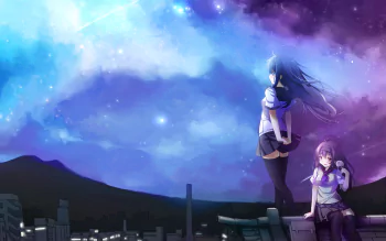 Shooting Star Dreams: HD Anime Wallpaper with Cityscape & School Uniforms by spirtie