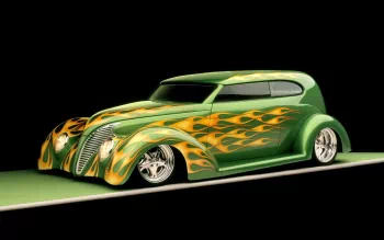 HD Wallpaper of a Green Ford Sedan with Flames