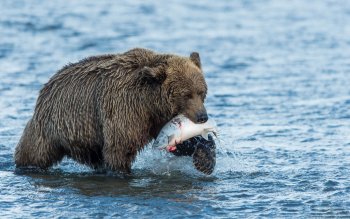 Majestic Brown Bear Catching Fish – Stunning HD Wildlife Wallpaper