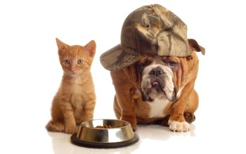 4K Ultra HD Cute Companions: Adorable Kitten and Stylish Bulldog