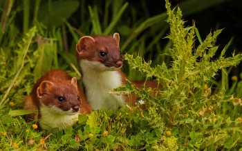 Meadow Mischief: HD Ferret Duo Wallpaper
