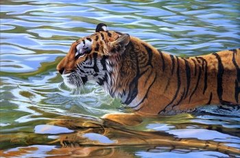 Majestic Tiger in Water - HD Wallpaper