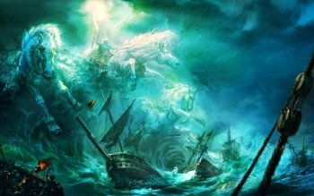 Mythical Waves: A Fantasy HD Wallpaper of Knights and Ships by Shuxing Li