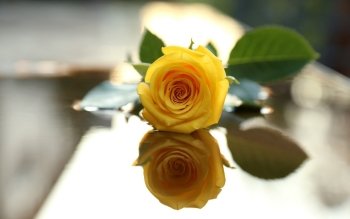 Mirrored Yellow Rose HD Wallpaper