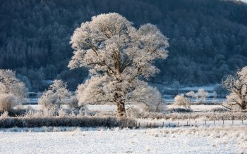 Winter’s Embrace: Majestic Frosted Forest HD Wallpaper