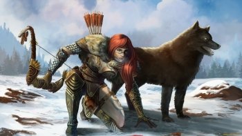 Guild Wars 2 HD Wallpaper: Arctic Huntress and Loyal Wolf Companion by bakarov