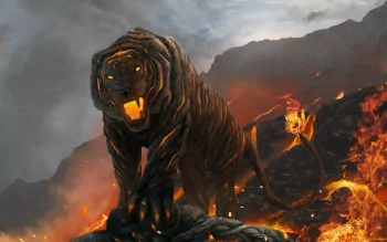 Fantasy Tiger HD Wallpaper: The Fiery Guardian of the Lava Realm