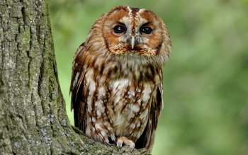 Tawny Owl Perched on Tree Trunk – Stunning HD Wildlife Wallpaper