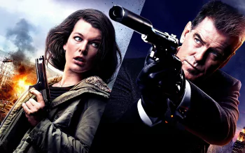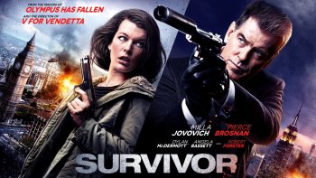 Survivor (2015) 4K Ultra HD Wallpaper featuring Milla Jovovich & Pierce Brosnan