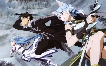 Sword Art Online II: 4K Ultra HD Wallpaper Featuring Sinon, Asuna, and Kirito