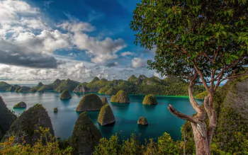 Raja Ampat Serenity: Stunning Indonesian Tree-Laden Landscape HD Wallpaper