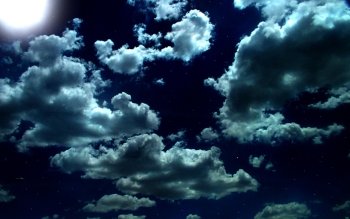 Serene Blue Night Sky with Luminous Clouds – HD Nature Wallpaper