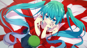 Hatsune Miku Radiance: Smiling Vocaloid in Red Elegance HD Wallpaper by Tannhauser