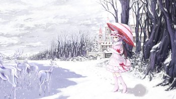 Remilia Scarlet’s Winter Elegance - Anime HD Wallpaper with Pink Dress & Snowfall