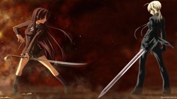 Saber vs Mio Akiyama HD Crossover Wallpaper