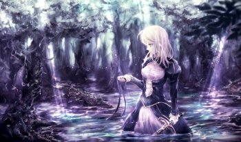 Fate/Stay Night HD Anime Wallpaper: Saber in Enchanted Forest Light by nuwanko
