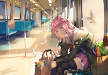 Anime Bird Journey: Original HD Train Adventure Wallpaper by Vofan