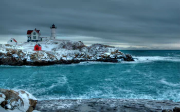 Winter Lighthouse by the Sea: Snowy Horizon HD Wallpaper